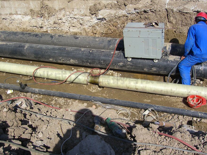 由計算機控制,在芯模上按規(guī)定的與纖維纏繞玻璃鋼管相同的工藝制造內(nèi)襯,凝膠后按設(shè)計好的線型和厚度纏繞結(jié)構(gòu)層,并將石英砂與樹脂混合的砂漿纏在結(jié)構(gòu)層中,最后纏繞外保護(hù)層。